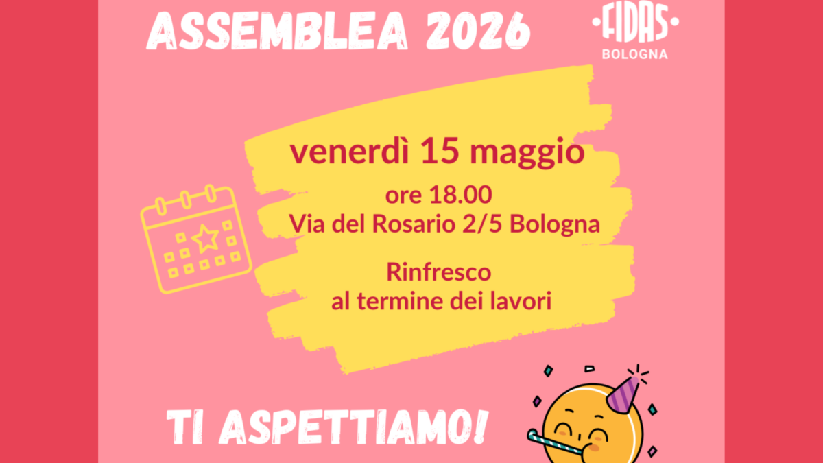 Vi aspettiamo venerdì 15 maggio 2026, alle ore 18,00 presso la sede di FIDAS Bologna, in via del Rosario 2/5 Bologna. Scarica la convocazione formale all'assemblea e il modulo di delega per i soci impossibilitati a partecipare.