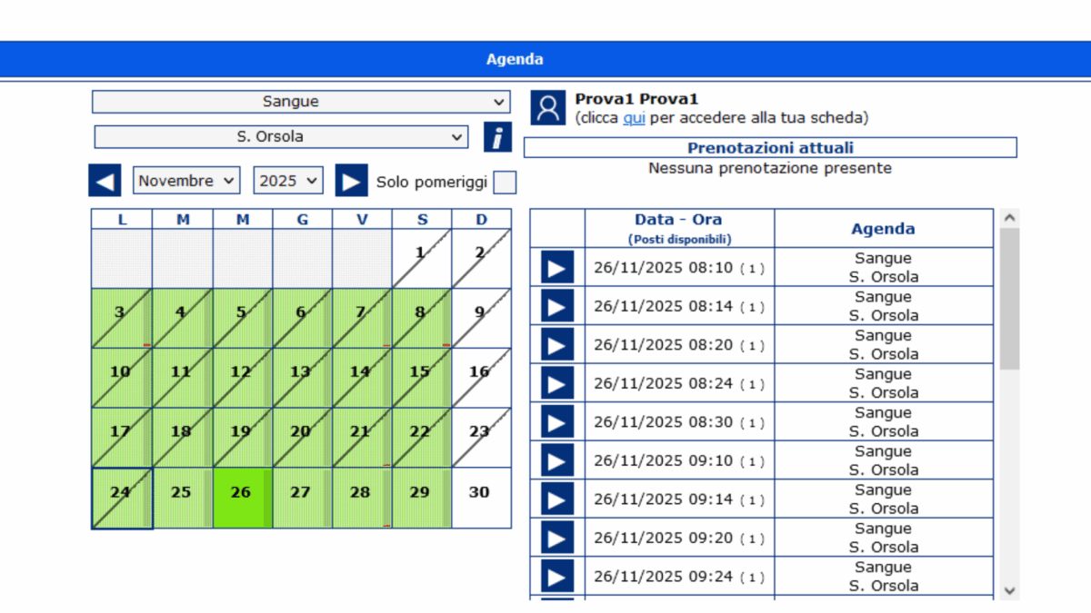 6 Novembre 2025Segnaliamo che il giorno 3 dicembre 2025, a partire dalle ore 14.00, sarà inibito temporaneamente il servizio di prenotazione e gestione delle prenotazioni delle agende dei donatori.